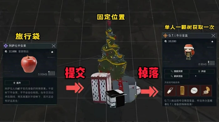 活动联动兑换:将平安果提交到圣诞树处,可以换取冬日盲盒,补充赛季资源收益。