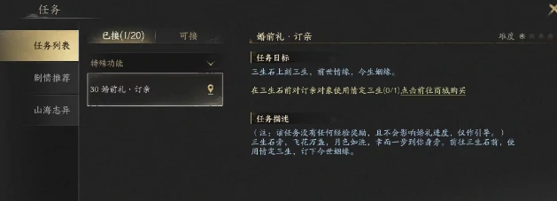 结为伴侣首先要求是不同性别的两个角色,等级达标35级、友好度满5000,这是必须满足的基础条件。确认双方都满足条件后,组队前往三生石处领取定亲任务,其中一方使用道具「情定三生」,另一方在60秒内点击确认,即可完成定亲。定亲成功后,好友列表里会新增定亲专属标识,只有定亲后才能申请正式结婚。三生石在九黎、巴蜀等区域均有分布,具体位置为九黎丹朱村、巴蜀女娲宫,玩家通过自动寻路就能直接抵达操作。