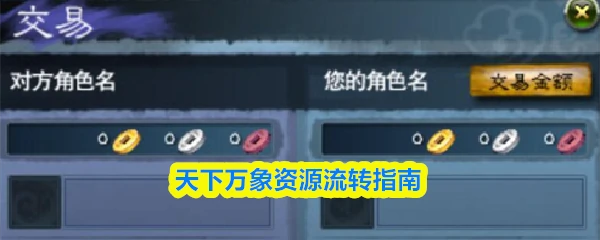 天下万象资源流转指南:玩家可通过面对面直接交易或官方藏宝阁平台,安全交换装备与角色。其中角色交易需满足等级、密保及冷却期等条件,建议优先选用官方渠道,切实保障账号与资金安全。