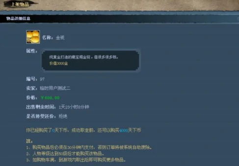 进入游戏后找到“金满堂”NPC,选择“藏宝阁角色查询”功能,即可浏览所有已审核上架的角色信息。每条角色条目均包含等级、战力、外观、历史交易记录等关键信息,供买家审慎比对。确认意向后,按提示完成支付,系统将在后台校验合规性并执行过户。值得注意的是,寄售期间原角色仍可正常登录游玩,每次上线均会收到系统邮件提醒,确保卖家全程知晓相关情况。