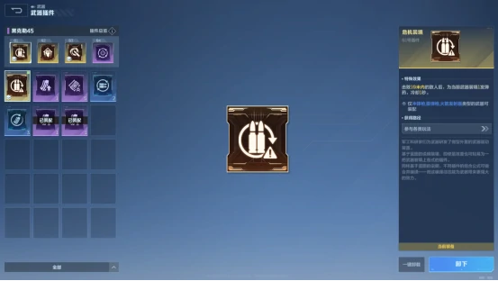 为了提高主动技能的使用频率,2号位优先带加主技能充能速度的插件,后期刷到高等级的再替换就行。