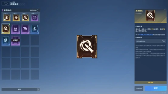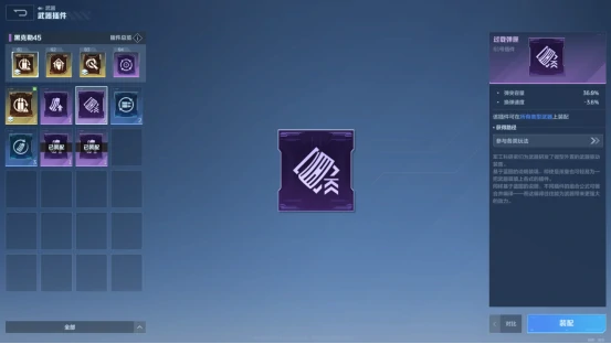前期没刷到太多金色插件,整体强度会稍弱一些;先选加弹匣扩容的插件过渡,等中期刷到金色插件再替换成更高品质的。