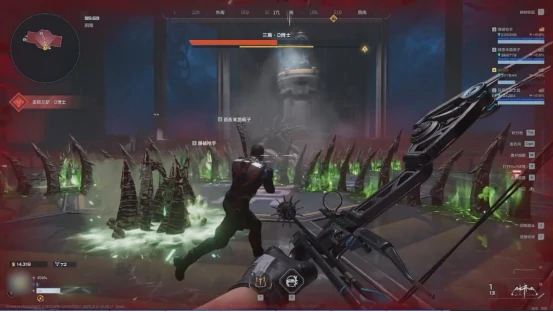除此之外,他还有一个派生技能:操控这些骨头追踪攻击我们。这个技能的躲避难度较高,单纯跑动或跳跃效果都不明显,不过好在伤害不算高(如果有玩家摸清了可靠的躲避方法,欢迎在评论区分享)。