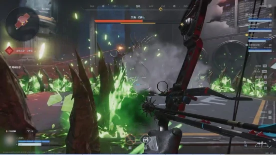 第四种攻击是喷射毒液,发动前它的嘴巴会有明显的蓄力动作,口腔内还能看到绿色液体。这时我们需要集中火力攻击它的腹部——腹部会显示红色的弱点区域,击中后就能打断它的蓄力动作。