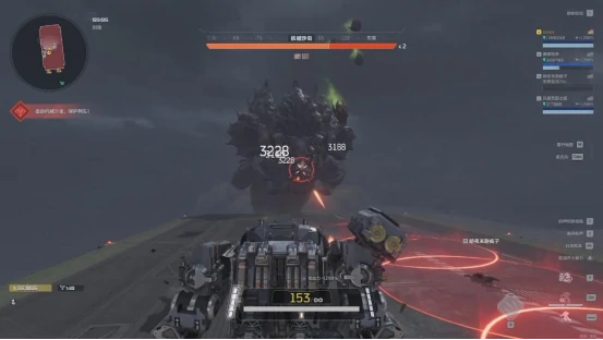 机械沙虫的第一种攻击是开局的前冲撕咬,发动前会出现大面积红色预警范围,只要及时拉开距离就能轻松规避。