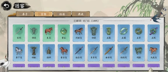 宝物:前期用河曲马、月牙剑、颂鼎,后期可换成湛卢、大克鼎