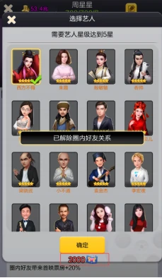 圈友系统:一个6星艺人凑满圈友后,能固定提升22%的首映票房。拿到新的6星艺人时,先查看它需要的圈友名单,后续收集5星、6星艺人就可以朝着这个方向积累,如果遇到圈友重叠的情况,用圈友册就能更换
