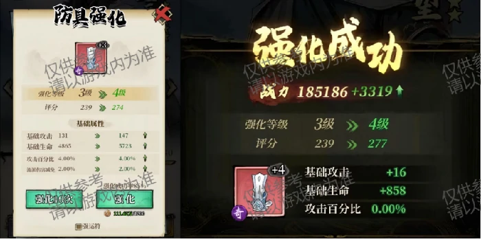 除此之外,装备的品质对应不同阶级,阶级高低会直接限制装备的强化等级上限