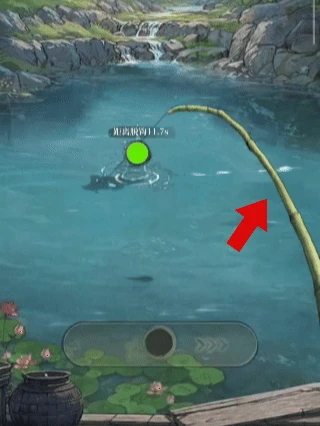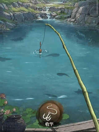 第四步:当看到鱼持续触碰鱼饵时,就说明有鱼上钩了!这时立刻点击收竿按钮。