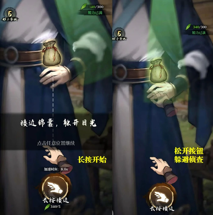 长按屏幕就能控制手部移动,让它慢慢靠近目标锦囊;