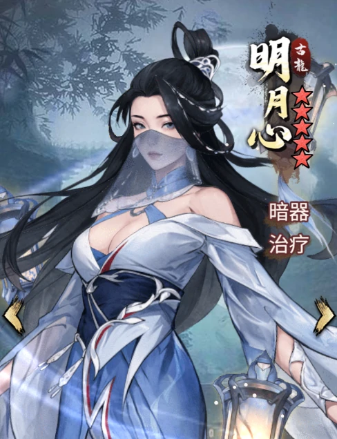 核心技能介绍:明月无心——能给残血队友施加巨额护盾,同时提升其伤害输出,是队伍绝地反击的坚实壁垒;此外她的多个技能还能打出高额暗器伤害。