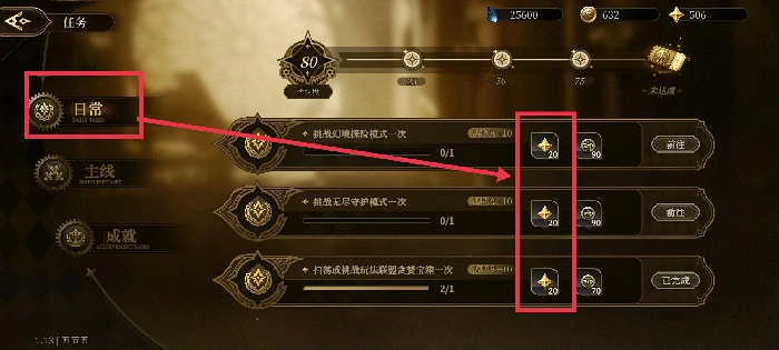 完成每日刷新的日常任务、推进剧情主线关卡、达成各类成就目标,都能领取对应钻石奖励