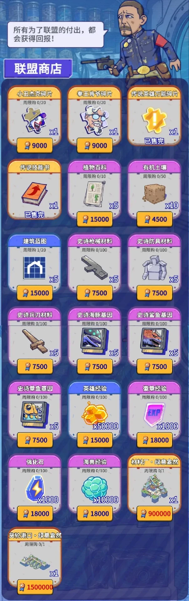 其余物资方面,像小丑、肯爷这类英雄碎片,如果不是你当前计划重点培养的目标,就不推荐消耗功勋兑换;植物百科与建筑蓝图则可以根据自身的发展需求,选择性进行兑换。