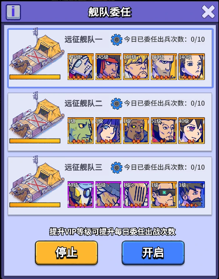 ③ 玩家VIP等级达到VIP3时,可解锁舰队委任功能,开启后舰队将自动参与城战。当舰队耐久低于1600点,或是当前委托周期结束后,会自动进入修复流程;若还有剩余委托次数,修复完成后会自动重返战场继续参战。