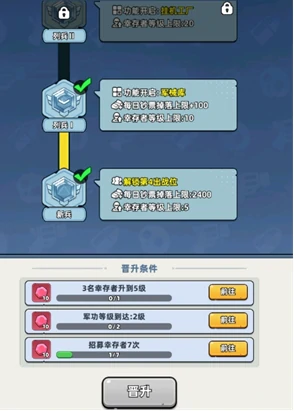 在生存33天里,头衔是提升自身实力的核心要素。它既能逐步解锁最多5个上阵位置、开启军械库、竞技场这类核心玩法,还能显著拔高资源获取速度与挂机收益效率。头衔晋升完全依靠军功,获取军功的核心途径是首次击败BOSS以及在首领试炼中完成三星挑战。