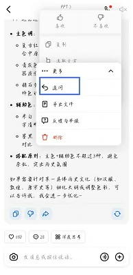5、你还可以对豆包生成的ppt提出修改意见,长按该ppt对应的对话框,点击更多选项,选择追问。