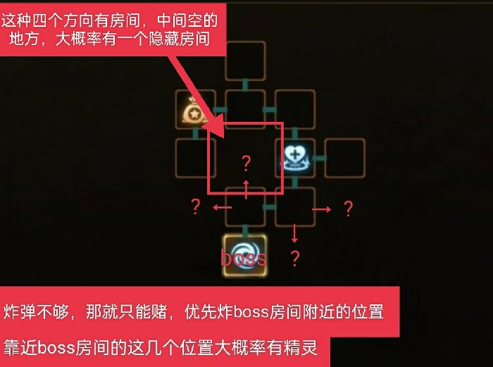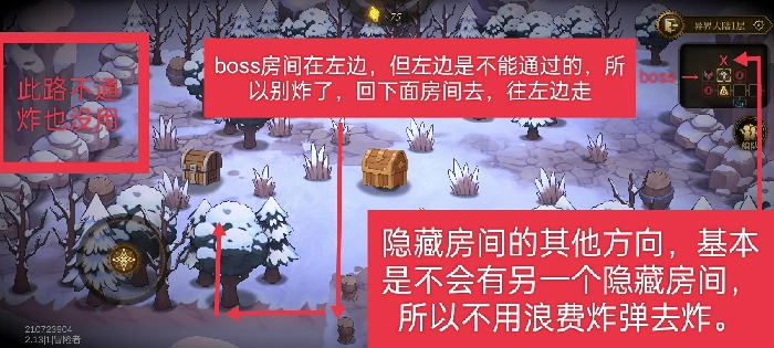 探索隐藏房间前的准备工作:记得先清空当前楼层除Boss房外所有可破坏的木桶、箱子,把里面的炸弹全部收集齐全。注意,一旦进入Boss房就没法返回其他区域,千万别提前进Boss房搜刮,没准备好也别急着挑战Boss
