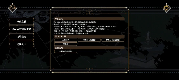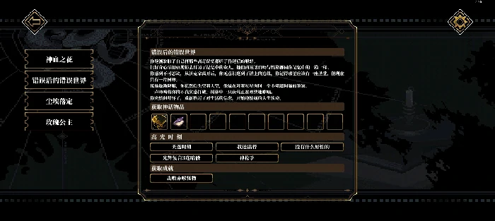 前几次尝试踩了不少坑:第一次完全没找线索,仪式启动后直接触发了血之花结局;第二次误打误撞进了墓园触发修女支线,交手后达成错误世界结局;第三次因为线索没收集齐全就放富商离开,最后只达成尘埃落定结局。