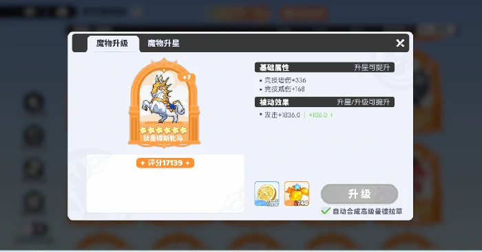 金叶商店兑换的神话魔物,升星需要消耗钻石星辰(可在金叶商店或高阶竞技场兑换);