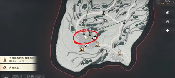 凑够足够的生烧饼后,前往图示的篝火位置,在篝火旁选择「取暖」选项就能把生烧饼烤成熟热的烤饼了