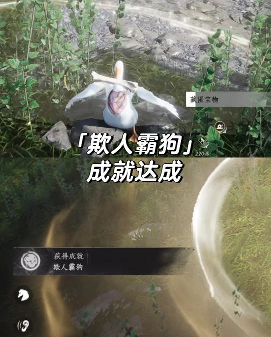 怪盗一只鹅是燕云十六声周年庆推出的趣味活动,其中隐藏成就欺人霸狗的解锁方法为:前往清河镇指定位置找到一只小狗,偷走它的骨头并藏匿妥当,就能解锁该成就。