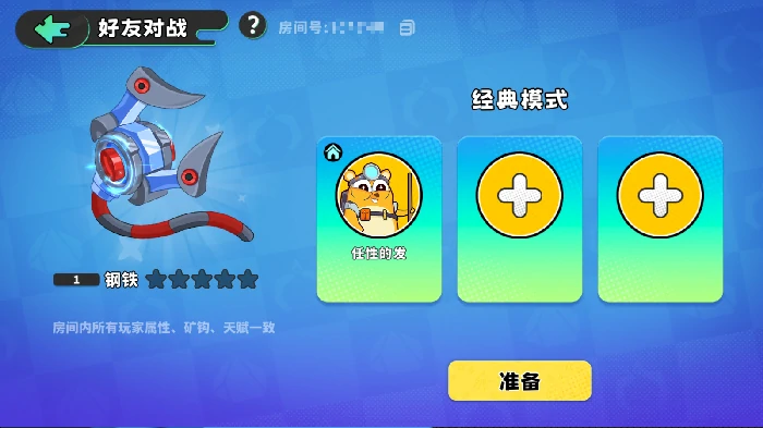 全员公平对战:进入房间后,所有玩家的属性、天赋、矿钩等级和星级将自动统一,回归最纯粹的操作较量!