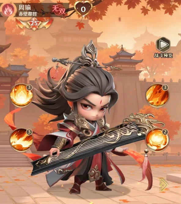 在格斗三国志里,周瑜是一名火系核心法师,主打灼烧、嘲讽效果,同时拥有可观的群体暴击能力。他的技能不仅能给敌人挂上持续灼烧的debuff,还能概率触发嘲讽控制;大招更是能根据目标身上的灼烧层数,大幅拔高自身暴击率与暴击伤害。阵容搭配上建议围绕灼烧体系构建,许褚、蔡文姬、马超、夏侯惇、太史慈这些武将都是不错的协同选择,通过叠加灼烧状态与控制效果,持续压制敌方血线并增强爆发能力。