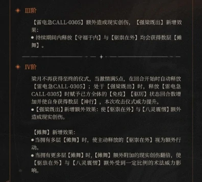梁月解锁狂想后新增傩舞叠层机制,友方触发额外行动,或是在强梁既出状态下释放1、2技能,均可累积傩舞层数,层数达标后可激活以下效果: