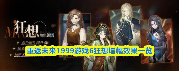 在重返未来1999游戏里,6的狂想天赋让它从原本的通用型净化辅助,彻底蜕变为能兼顾全方面增益与减益的全能核心角色,核心改动围绕减益集合、增益集合的全面更新展开,下面为大家整理6狂想的具体增幅效果一览。