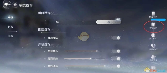 礼包兑换操作路径:个人-设置-礼包兑换
