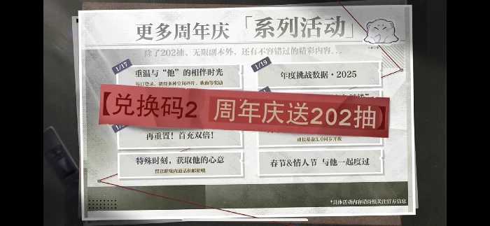 2、可兑换码:周年庆送202抽