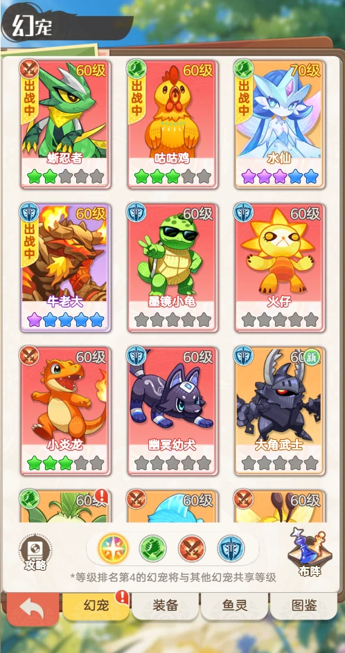 在捕捉等级还没到6级的时候,我们可以优先捕捉海精灵、哈鲁、火龙兽和咕咕鸡,这几只宠物升到2星就足够用了。之所以要升2星,是因为满足进化门槛后,就能解锁被动技能,为队伍提供不少战力加成。期间碰到没收集过的宠物也别放过,顺手捉了开图鉴,对后续发展也有帮助。