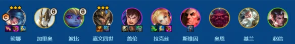 琴女、加里奥、波比、皇子、盖伦、拉克丝、乌鸦、奥恩、基兰、赵信