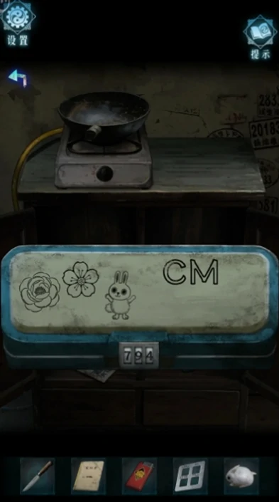 3、留意文具盒上的对应图案提示,使用道具直尺分别测量厕所贴花、窗户窗花、笔记本上兔子图案的长度,测出的结果分别为7cm、9cm、4cm。将这三个数字按顺序输入文具盒,打开后就能拿到老花镜,之后可拿着老花镜找老太太兑换蜡烛。