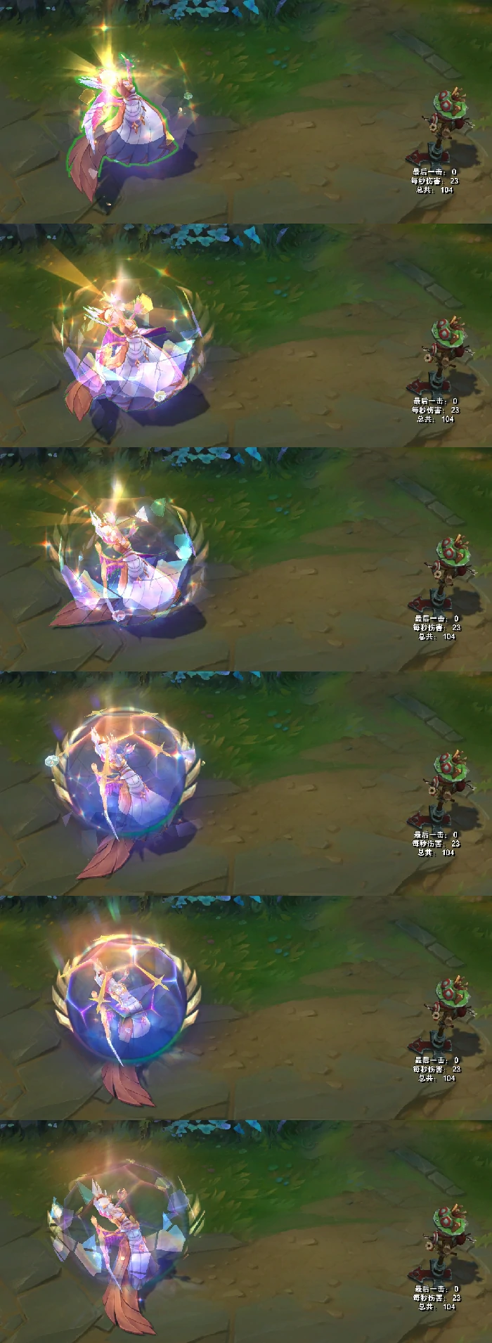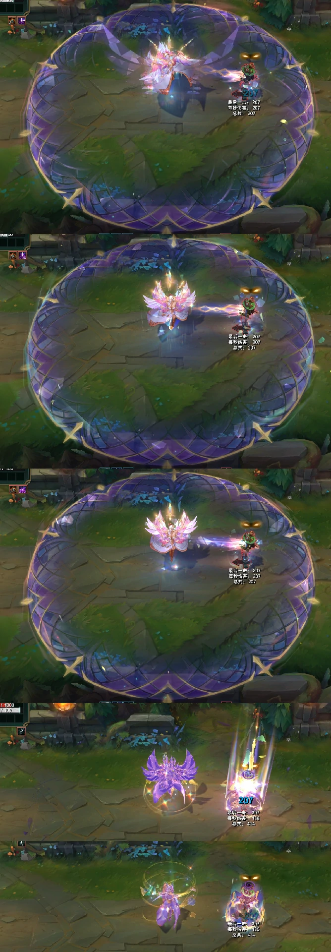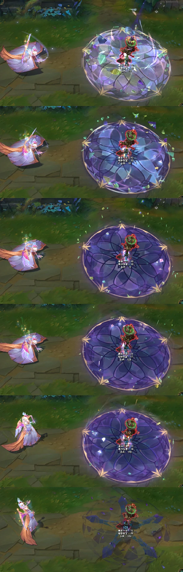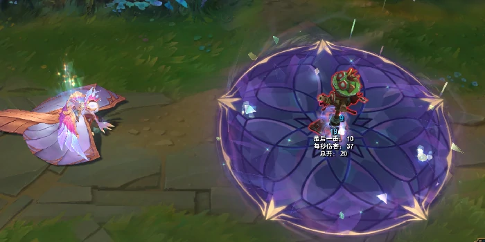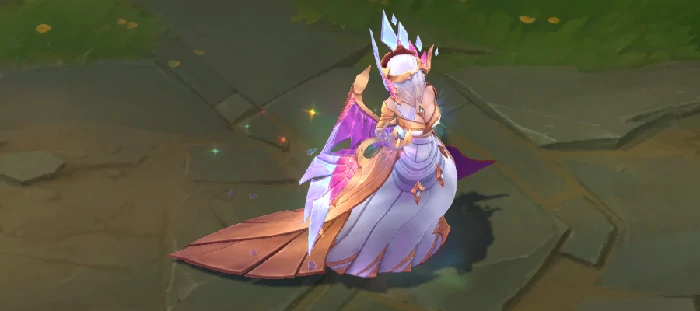 技能结束阶段,莫甘娜的身体会化作紫色水晶,周身浮现环绕式光效。