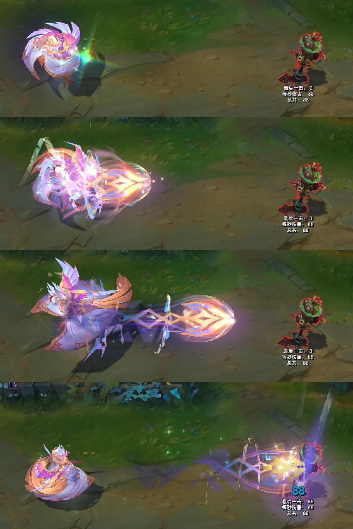 普通攻击采用光剑造型,攻击拖尾由玻璃碎片构成,还伴随圆形灯光,命中目标时能看到明显的亮光反馈。