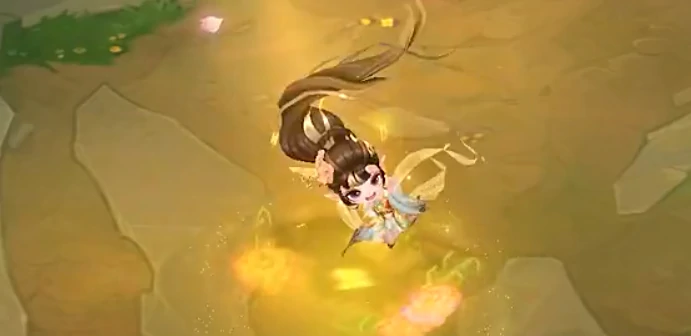 2、淘汰特效:先挥动团扇划出一道优雅弧线,将敌方小小英雄卷起,随即眼冒爱心,双手做出合起书卷的动作,把对手“夹”在其中。