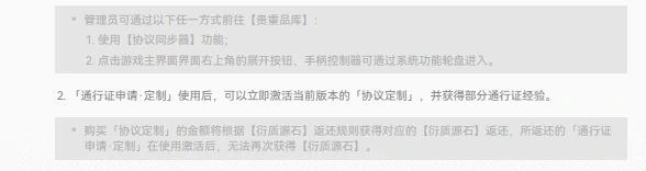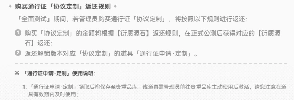 2. 购买「协议定制」所花费的金额,同样按照衍质源石的返还规则,兑换对应数量的衍质源石进行返还;返还的「通行证申请·定制」在激活使用后,无法再次获得衍质源石返还。