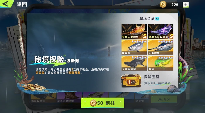 1)秘境玩法:当遇到秘境场景时,如果你持有秘境币,且目标是钓获该秘境中的变异鱼或大体型鱼类,直接进入挑战就很划算!哪怕没能钓到变异鱼,也大概率能收获该地图的大鱼,稳赚不亏!