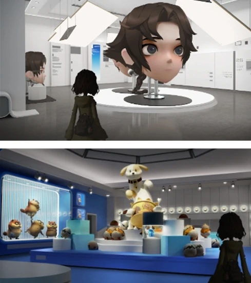 进入未来时空区域后,玩家会遇到不少充满趣味的特色房间:有的房间摆放着工友模样的巨型头像,点击就能将其切换成你自己的头像;还有的房间直接被软萌的巨型猫咪占据,画风十分治愈。