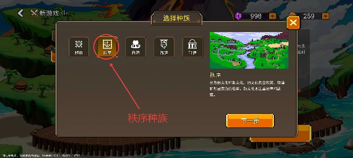 2.种族选择:势力锁定秩序种族,这个种族的兵种体系完善,操作门槛低,很适合用来练手熟悉机制。