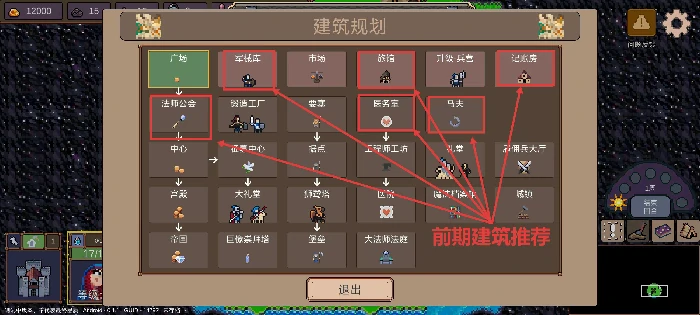 2.对已建成的建筑进行升级,获取更高级的功能加成。