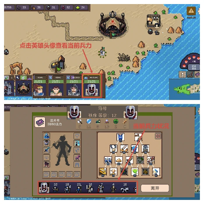 3.野外探索过程中要时刻留意兵力剩余,一旦兵力不足立刻返回城镇补充。