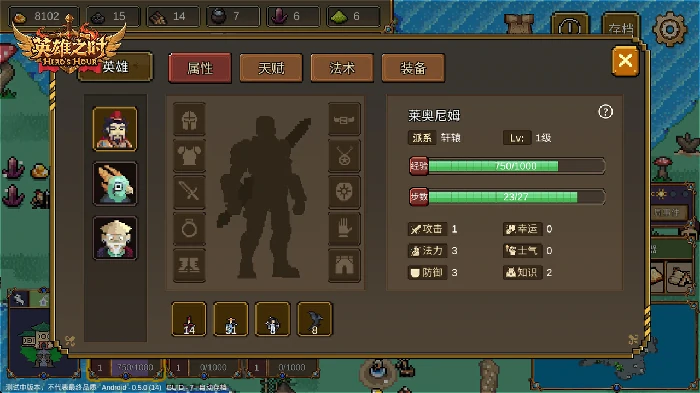 ✦英雄信息:英雄面板中会展示当前英雄的装备、属性、技能、经验值与剩余行动力。