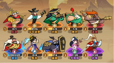 上阵棋子优先级:五射手组合(后羿、马可波罗、刘备、黄忠、孟获)>廉颇>甄洛>孙策