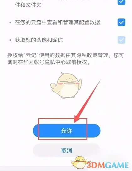 3、跳转至云同步设置页面后,点击选择“允许”选项即可完成设置。如图: