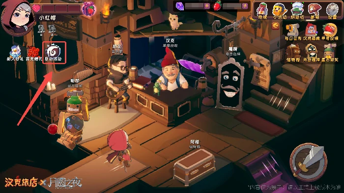 在旅店主界面左上角,点击联动活动按钮就能进入专属活动页面。