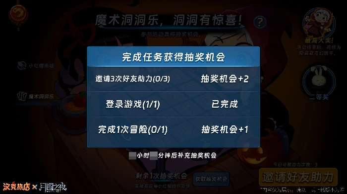 每完成一项任务,就能获得对应抽奖次数。每日任务会在0点刷新,大家每日最多可获得4次抽奖机会。