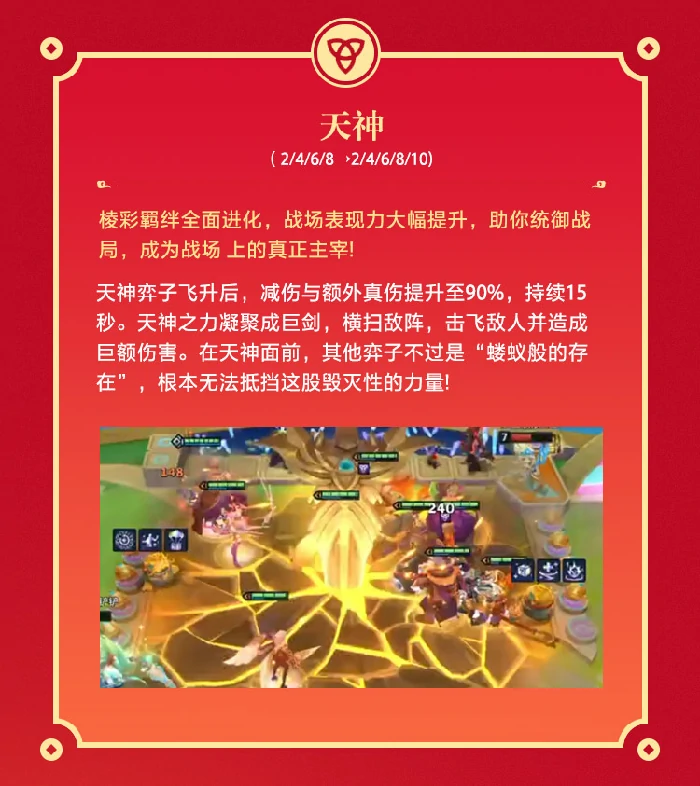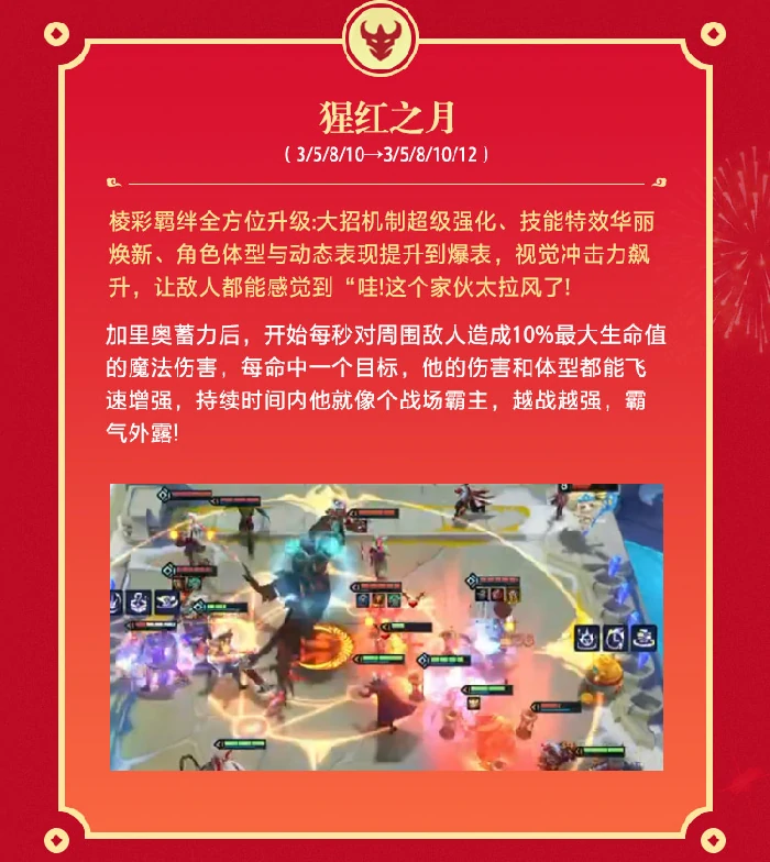 金铲铲之战天选福星赛季确定2月5日正式回归,这次不仅原汁原味还原经典福星玩法框架,还新增核心机制福星守护神,这类特殊弈子同一时间仅能上阵一名,既不占用人口名额,也不会计入羁绊激活数量,却能从场上已激活的羁绊中获取强力属性增益。除此以外,羁绊效果、三星五费弈子特效以及强化符文都迎来了全面升级,再搭配多场专属新春活动,将为玩家打造趣味与福利拉满的春节游戏体验。