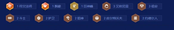 1巨神峰、3艾欧尼亚、3祖安、2斗士、2护卫、2狙神、2皮尔特沃夫、2约德尔人